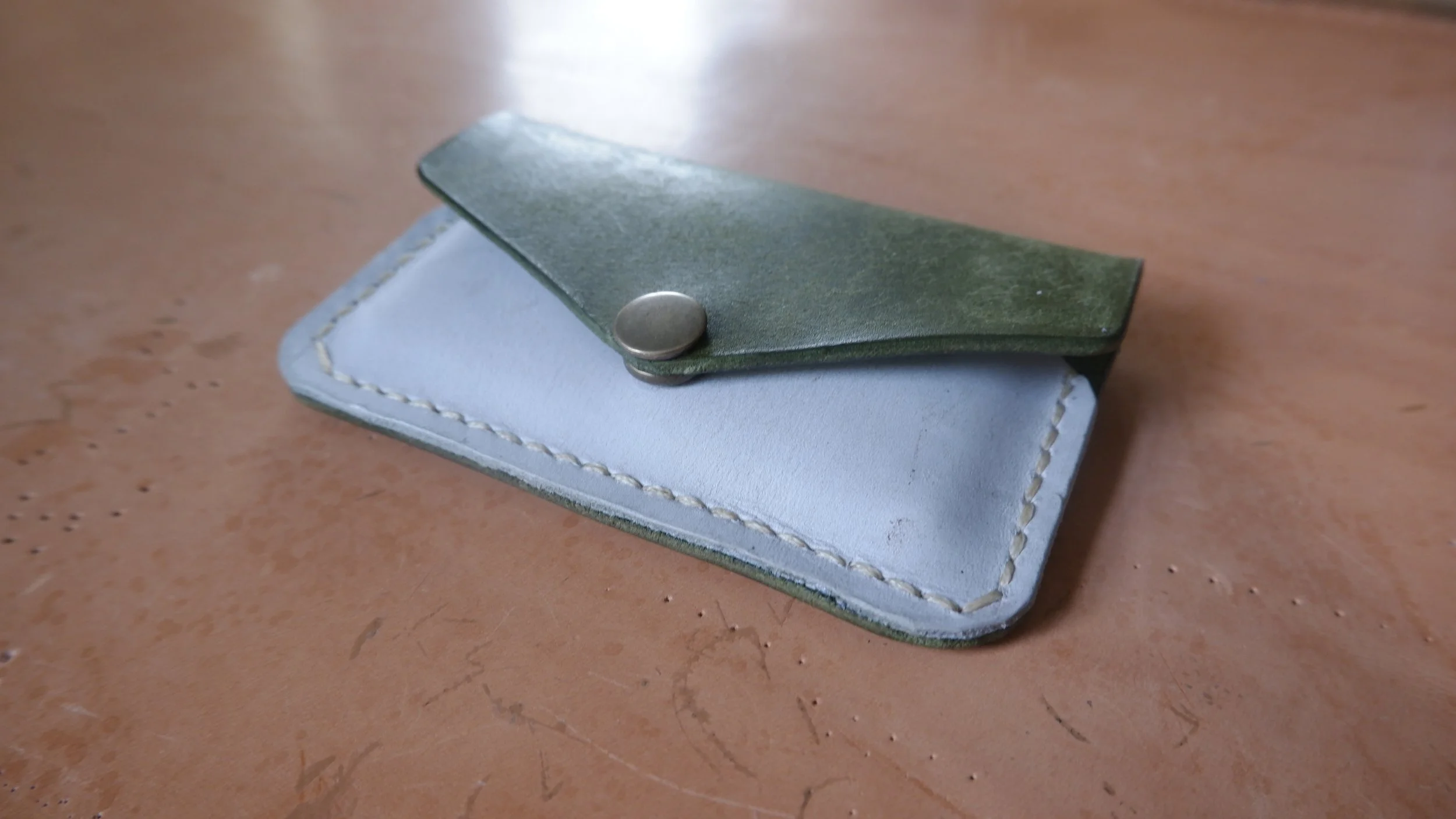 After showing the slim wallet to my family, they were concerned about how the card holder is open on the top. Although the cards were held securely between the layers of leather and would require a deliberate attempt to dislodge them, I went ahead and made an envelope style version. All it took was an extended back to be folded over and a button to secure it all. No more worries.